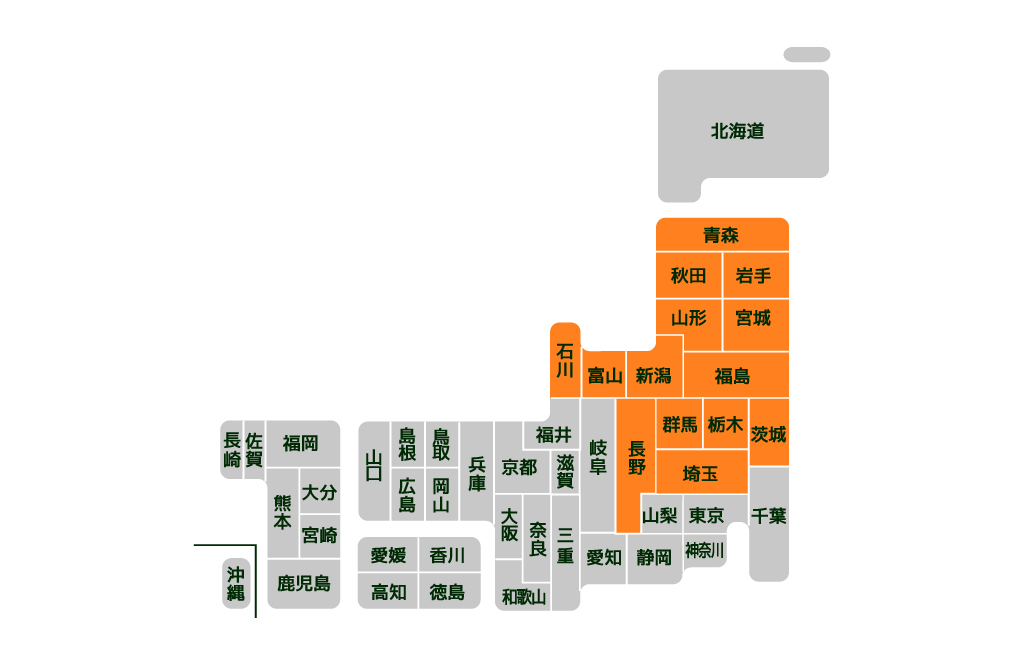 東北~関東圏まで「庄内タイヤ」の査定スタッフがお伺いし、出張買取を行います。(上記地図を参照ください。)